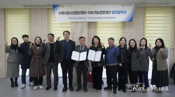 [ 로이뉴스(Roi News) 이지수 기자 ] 수원시청소년청년재단과 지속가능경영재단은 1월 22일 고립‧은둔 청소년‧청년 및 사회적 취약 청소년‧청년 지원을 위한 업무협약(MOU)을 체결했다.