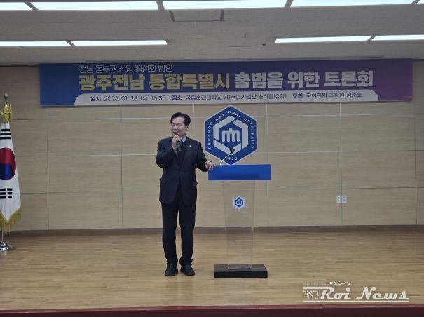[ 로이뉴스(Roi News) 이지수 기자 ] 더불어민주당 주철현 국회의원(전남 여수시갑)은 28일, 국립순천대학교에서 ‘전남광주특별시’ 출범 과정에서 전남 동부권 산업의 역할과 경쟁력 강화를 논의하기 위한 '광주전남 통합특별시 출범 토론회'를 개최했다.