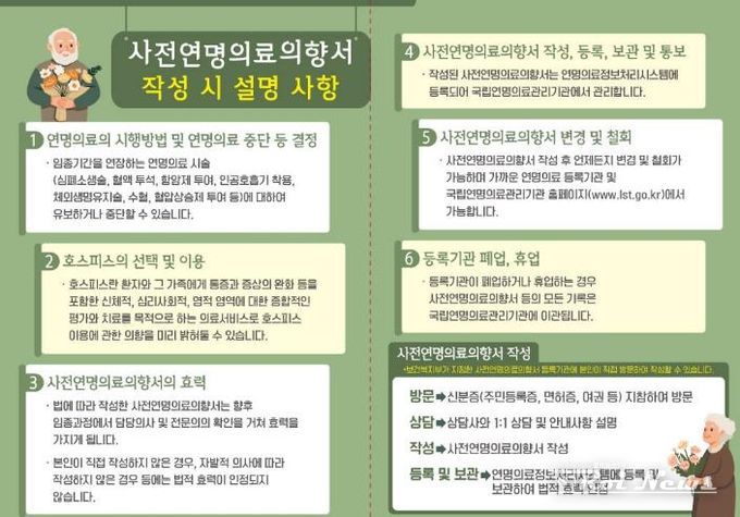 19세 이상 성인이라면 누구나 사전연명의료의향서를 통해 연명의료 중단에 관한 본인 의사를 사전에 문서로 남길 수 있다.
