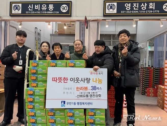 [ 로이뉴스(Roi News) 이지수 기자 ] 수원 농수산물도매시장 내 신비유통‧영진상회에서 설 명절을 앞두고 우만동 이웃들에게 따뜻한 정을 전했다고 밝혔다.