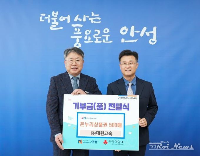 [ 로이뉴스(Roi News) 이지수 기자 ] 안성시는 2월 3일 대원고속으로부터 지역의 어려운 이웃을 돕기 위한 온누리상품권 500매(500만 원 상당)를 전달받았다고 밝혔다.