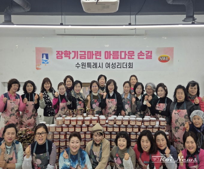 김미애 수원시여성리더회 총회장과 이지영 수원시여성단체협의회 명예회장 등 회원 20여 명이 참여해 명란젓과 낙지젓 등 4종의 젓갈을 소포장해 판매했다. 수익금은 장학금으로 기부할 예정이다.
