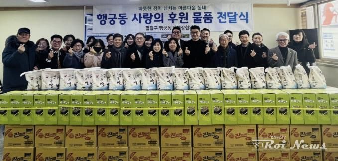 [ 로이뉴스(Roi News) 이지수 기자 ] 수원시 팔달구 행궁동은 지난 6일 설 명절을 맞아 ‘행궁동 사랑의 후원 물품 전달식’을 개최했다. 이번 전달식에는 설 명절을 앞두고 행궁동 취약계층을 위해 후원 물품을 기부한 행궁동 주민자치회를 비롯한 단체장들과 후원자들이 참석해 이웃 나눔의 의미를 함께 했다.