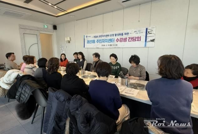 [ 로이뉴스(Roi News) 이지수 기자 ] 지난 6일 및 9일, 권선1동 주민자치회는 주민자치센터 프로그램 운영 활성화를 도모하고자 2026년 권선1동 주민자치센터 강사 간담회 및 수강생 간담회를 각각 개최했다.