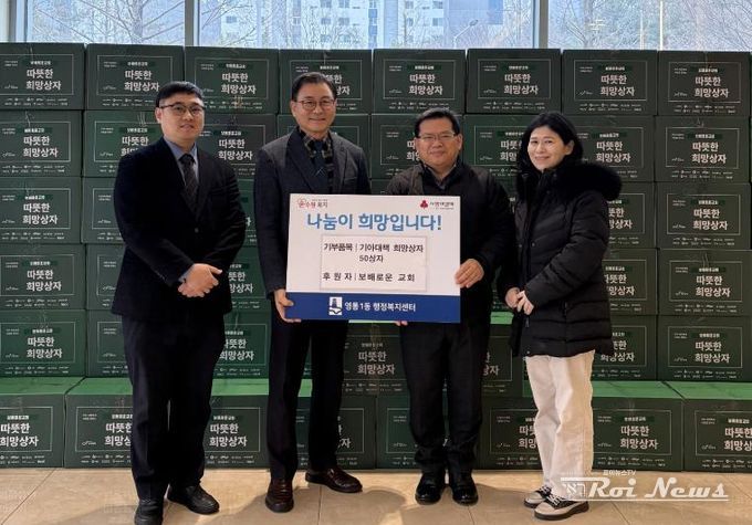 신한길 영통1동장은 “매년 잊지 않고 따뜻한 나눔을 실천해 주시는 보배로운 교회에 깊이 감사드린다. 기탁해 주신 물품은 도움이 필요한 가구에 소중히 전달하겠다”고 말했다.