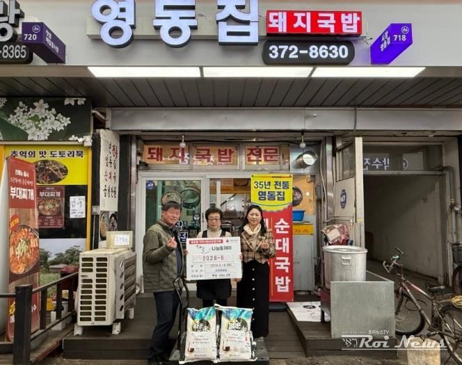 임영자 시장영동집 대표는 “작은 정성이지만 지역 내 어려운 분들이 든든한 한 끼를 드시는 데 보탬이 됐으면 좋겠다”며 “앞으로도 이웃에 대한 관심과 나눔을 지속해 나가겠다”고 전했다.