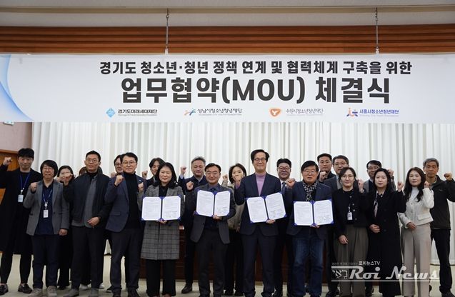 [ 로이뉴스(Roi News) 이지수 기자 ] 수원시청소년청년재단은 2월 12일, 경기도미래세대재단, 성남시청소년청년재단, 시흥시청소년청년재단과 함께 ‘경기도 청년 정책 연계 및 협력체계 구축을 위한 업무협약’을 체결했다.