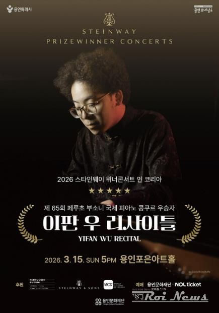 [ 로이뉴스(Roi News) 이지수 기자 ] 용인문화재단은 오는 3월 15일 오후 5시, 용인포은아트홀에서 ‘2026 스타인웨이 위너콘서트 – 이판 우 리사이틀’을 개최한다고 밝혔다.