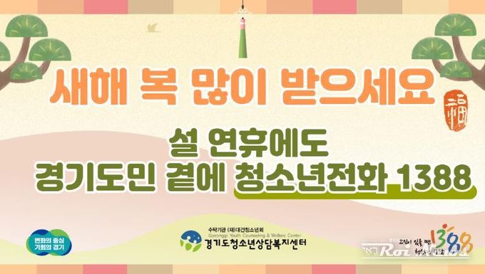 [ 로이뉴스(Roi News) 이지수 기자 ] 경기도는 설 당일을 포함해 14~18일 연휴 기간에도 위기 청소년 심리 상담 서비스 ‘청소년전화1388’을 24시간 운영한다.