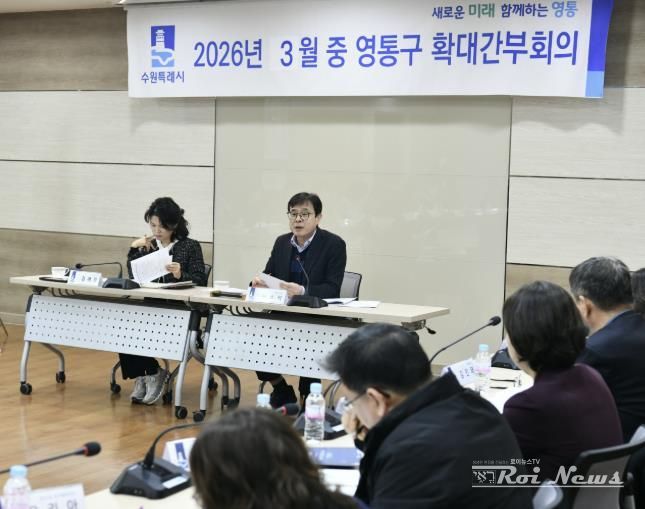 [ 로이뉴스(Roi News) 이지수 기자 ] 수원특례시 영통구는 지난 24일, 구청 상황실에서 ‘2026년 3월 확대간부회의’를 개최하고, 구정 주요 현안을 집중 점검했다.