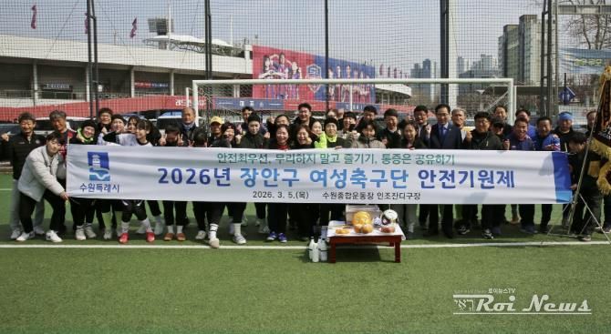 [ 로이뉴스(Roi News) 이지수 기자 ] 수원시 장안구 여성축구단은 지난 5일, 수원종합운동장 인조잔디구장에서 선수단과 관계자 등 30여 명이 참석한 가운데 2026년 안전기원제를 진행했다.