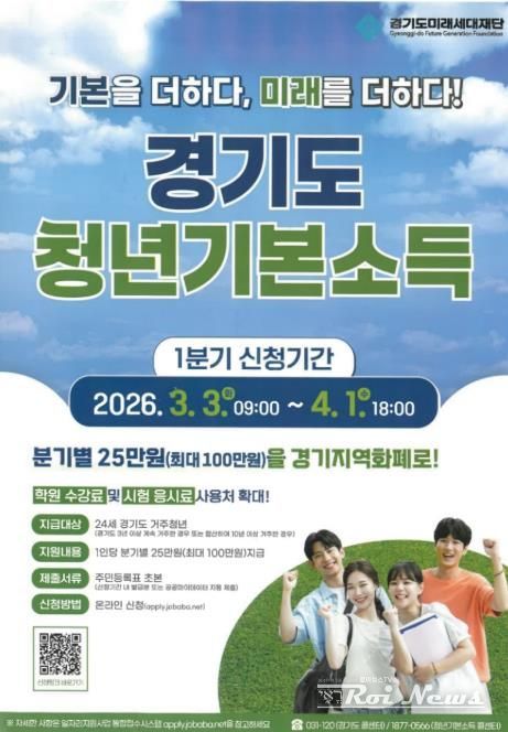 [ 로이뉴스(Roi News) 이지수 기자 ] 오산시는 24세 청년에게 분기별 25만 원을 지급하는 ‘청년기본소득’ 2026년 1분기 신청을 3월 3일부터 4월 1일까지 접수한다고 밝혔다.