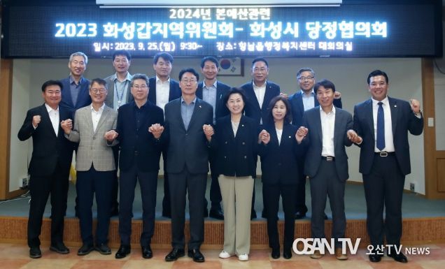 [ 오산TV 이경호 기자 ] 송옥주 더불어민주당 화성갑 지역위원장과 정명근 화성시장을 비롯한 도의원, 시의원, 관계 공무원은 25일 향남읍행정복지센터에서 2024년 본예산 수립 및 지역 현안 해결을 위한 당정협의회를 실시했다.