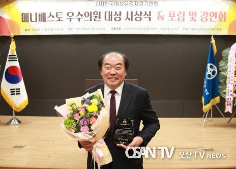 [ 로이뉴스(오산TV) 이경호 기자 ] 용인특례시의회 김운봉(보라동,동백3동,상하동/국민의힘) 의원이 28일 국회의원회관 제1소회의실에서 (사)한국여성유권자경기연맹 주관 ‘매니페스토 우수의원 대상’을 수상했다.