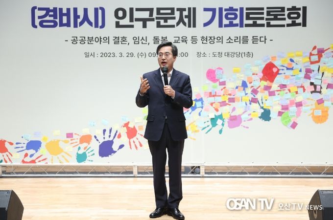 지난해 7월 인구의 날 기념행사에서 김 지사는 “인구문제는 누구나 다 알고 있고 감지하는 위험인데, 제대로 잘 대처하지 못하거나 대처할 엄두도 내지 못하는 ‘회색코뿔소’”라며 “이 문제는 특정 조직이나 사람으로 해결할 수 없는 문제이고, 작아도 좋으니까 실질적 변화를 만들어야 한다”고 밝혔다.