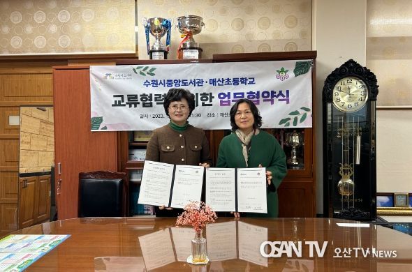 협약에 따라 수원시 중앙도서관과 매산초등학교는 ▲도서관 자료 공동 이용 ▲독서문화프로그램 제공 ▲독서문화프로그램 개발·연구에 관한 정보공유 등에 협력한다.