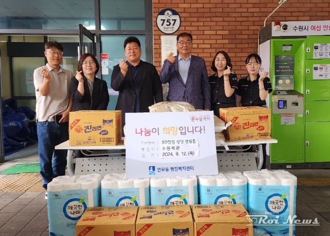 [ 로이뉴스(Roi News) 이경호 기자 ] 수원세관은 지난 12일, 추석 명절을 맞이하여 수원시 장안구 연무동 행정복지센터에 관내 소외계층을 위해 써달라며 50만 원 상당의 생필품을 전달했다.