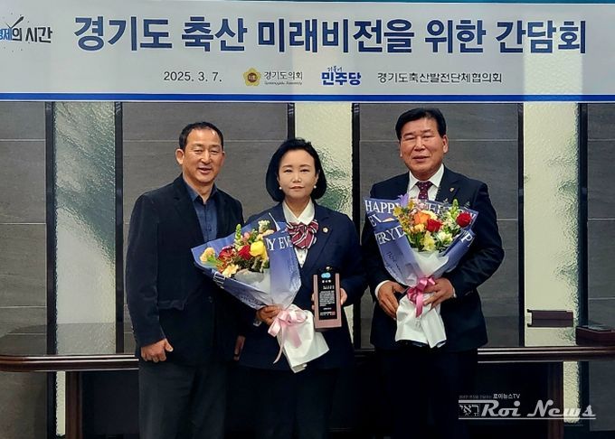 [ 로이뉴스(Roi News) 이지수 기자 ] 경기도의회 정윤경 부의장(더불어민주당, 군포1)과 최종현 대표의원(수원7)은 7일 수원축협에서 경기도 축산업 발전을 위한 헌신적인 노력과 축산업의 지속 가능한 성장 및 경쟁력 강화를 위한 기여를 인정받아 경기도축산발전단체협의회로부터 감사패를 받았다.