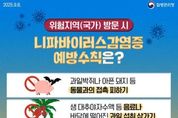 [ 로이뉴스(Roi News) 이지수 기자 ] 평택시는 최근 인도(서벵골주)에서의 니파바이러스 감염증 환자가 발생하여 해당 국가를 방문하는 시민들에게 감염 예방을 위한 각별한 주의를 당부했다. 니파바이러스 감염증은 1998년 말레이시아에서 처음 보고된 인수공통감염병으로, 인도(누적 환자 104명, 사망 72명), 방글라데시(누적 환자 343명, 사망 245명) 등 아시아 지역에서 산발적으로 발생했고 발열, 두통, 근육통 등으로 시작하여 의식 장애 등 신경계 증상으로 악화되는 것으로 알려져 있다. 또한 치명률은 40~75%에 이르고 현재 치료제 및 백신이 없으므로 감염 예방이 매우 중요하다. 발생 국가 여행 시에는 ▲과일박쥐나 아픈 돼지 등 동물과의 접촉 피하기 ▲생 대추야자수액 등 오염된 음료나 바닥에 떨어진 과일 섭취 금지 ▲환자의 혈액·체액 접촉 피하기 ▲30초 이상 손 씻기 ▲씻지 않은 손으로 눈, 코, 입 만지지 않기 등의 예방수칙을 철저히 준수해야 한다. 귀국 후 14일 이내에 의심 증상 발생 시 질병관리청 또는 관할 보건소로 신고해야 한다. 평택시 송탄보건소 관계자는 “니파바이러스 감염증은 사망률이