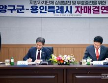 [ 로이뉴스(Roi News) 이지수 기자 ] 용인특례시는 6일 강원특별자치도 양구군과 자매결연을 하고, 두 도시의 교류와 발전을 위해 적극 협력하기로 했다. 이상일 시장은 이날 양구군청 중회의실에서 서흥원 군수와 두 도시 간 우의를 증진하고 상호 교류‧협력하는 데 합의하고, 자매결연 협약서에 서명했다. 이번 협약으로 양구군은 시의 16번째 자매도시가 됐다. 이상일 시장은 “양구는 문화예술 분야에서 과감한 투자를 하고 있고, 양구군립박수근미술관은 2023년 양구 출신 박수근 화백의 1956년 작품 ‘가족’을 품었는데 두 도시가 앞으로 가족처럼 잘 지냈으면 한다”며 “이번 협약을 계기로 양 도시가 협력을 강화해서 함께 발전하길 기원한다”고 말했다. 이 시장은 “양구군과 용인시의 훌륭한 농산물들이 양 도시에서 소비하도록 서로 홍보하는 등 협조 체계를 갖추는 노력도 기울이자"라며 "양구에는 테니스장, 축구장 등 스포츠 시설이 아주 잘 갖춰져 있는 만큼 용인의 스포츠팀이나 단체들이 양구를 찾아 훈련하는 등 체육 분야의 협력도 도모하면 좋겠다"고 했다. 서흥원 군수는 “용인의 인프라와 비전이