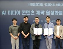 [ 로이뉴스(Roi News) 이지수 기자 ] 수원문화재단 미디어센터는 지난 24일 모피어스 스튜디오와 ‘AI 기반 콘텐츠 창·제작 협력 체계 구축’을 위한 업무협약(MOU)을 체결했다. 협약식에는 오영균 수원문화재단 대표이사와 이수영 모피어스 스튜디오 대표를 비롯한 양 기관 관계자들이 참석했으며, 모피어스 스튜디오가 개발한 창작자 친화형 AI 플랫폼 ‘AICRON(에이크론)’을 중심으로 향후 협력 사업 방향에 대해 논의했다. 협약에 따라 양 기관은 ▲생성형 AI 플랫폼을 통한 프로그램 구독 및 기술 지원 ▲ AI 콘텐츠 제작, 교육 등 AI 분야 발전을 위한 협업사업 등 다방면으로 협력할 예정이다. 특히, 미디어센터가 운영하는 AI 교육 프로그램에는 AICRON(에이크론) 플랫폼을 무상으로 제공함으로써 AI 콘텐츠 창·제작 활동에 활력을 더할 계획이다. 아울러 지난 21일부터 미디어센터와 협업해 운영 중인 동아방송예술대학교의 GX 사업 연계 수업에도 AICRON(에이크론) 플랫폼을 지원하여 학생들에게 폭넓은 창작 기회를 제공하고 있다. 수원문화재단 관계자는 “모피어스 스튜디오와의 업