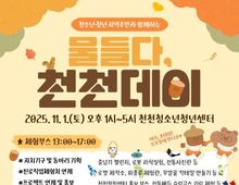 [ 로이뉴스(Roi News) 이지수 기자 ] 수원시청소년청년재단(이사장 최종진) 천천청소년청년센터는 청소년들의 꿈이 물드는 11월 1일 오후 1시부터 5시까지, 청소년·청년 및 주민이 함께하는 지역축제 ‘2025. 물들다, 천천데이’를 개최한다고 밝혔다. 센터 소속 자치기구 및 동아리가 주도적으로 기획하고 운영하는 체험부스, 먹거리 부스, 공연 등 다채롭게 축제를 구성하여 깊어가는 가을에 풍성하고 즐거운 경험을 선사할 예정이다. 세부적으로 ▲먹거리 체험(3개), ▲활동 체험부스(13개), ▲댄스 및 마술공연(3개) 등이 진행된다. 천천청소년청년센터 관계자는 “센터 소속 자치기구 및 동아리 친구들이 직접 기획하고 운영하는 행사인 만큼 이번 축제를 통해 지역 구성원들이 한자리에 모여 함께 즐기고 어울리는 시간을 갖게 되길 기대하며, 더 나아가 센터가 건전하고 활력있는 지역문화 조성에 기여하는 기회가 되기를 바란다.”고 전했다. 보다 자세한 내용은‘수원시청소년청년재단’홈페이지 또는 천천청소년청년센터로 문의하면 된다.