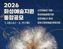 [ 로이뉴스(Roi News) 이지수 기자 ] (재)화성시문화관광재단은 화성특례시 지역 예술인의 안정적인 창작 활동과 지속 가능한 예술생태계 조성을 위해 오는 1월 28일부터 '2026 화성예술지원' 통합공모를 실시한다. '2026 화성예술지원'은 화성특례시의 지역적 특성과 예술환경을 반영하여 ▲화성예술활동지원, ▲경기예술활동지원 ‘모든예술31 화성’, ▲신진예술인 지원, ▲장애·다문화 예술인 특화지원, 총 4개 분야로 구성된 통합 예술지원사업이다. 본 사업은 화성특례시 전문예술인(단체)을 주요 대상으로 하며, ‘모든예술31 화성’ 분야의 경우 경기도 소재 전문예술인(단체)도 신청할 수 있다. 총 지원 규모는 7억 2,500만원이다. 이번 공모는 공연예술, 시각예술, 문학, 다원예술 등 다양한 예술 장르를 포괄하며, 사업별 지원 목적과 내용에 따라 개별 프로젝트당 400만 원에서 최대 2,000만 원까지 차등 지원한다. 세부 지원 내용과 신청 자격, 일정 등은 화성시문화관광재단 홈페이지를 통해 확인할 수 있다. 공모 신청은 재단 홈페이지 공고에 게시된 지원안내서를 참고하여 사업계획서 및 필수 제출서류를 구비한