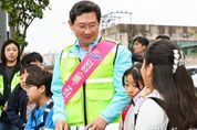 [ 로이뉴스(Roi News) 이지수 기자 ] 이상일 용인특례시장은 14일 아침 처인구 고림로에 위치한 고진초등학교 정문 횡단보도에서 어린이들의 안전한 통학환경 조성을 위한 교통지도 봉사활동에 참여하고 학교 주변 통학로를 점검했다. 이상일 시장은 서경란 고진초 교장, 녹색어머니회·학부모회·학생 등 60여명과 함께 등굣길 어린이들이 안전하게 길을 건널 수 있도록 돕고 운전자들에게 ‘어린이보호구역 내 서행’을 당부하는 교통안전 캠페인을 펼쳤다. 이 시장은 통학로 현장을 둘러보며 ▲고림고 유리방음벽 모서리 보호대 설치 ▲고림고~힐스테이트용인고진역 구간 횡단보도 너비 확대 ▲해당 구간 도로의 물고임 등 도로시설물 일제정비 ▲통학로 낙엽제거(보행자 미끄러짐 방지) 등의 추가 건의사항을 꼼꼼히 챙겼다. 이상일 시장은 녹색어머니회와 학부모회 회원들에게 “아이들의 등굣길을 지켜주셔서 감사 드린다”며 “학생들이 마음 놓고 통학할 수 있는 안전한 도시 환경을 만드는 것이 무엇보다 중요한 만큼 시에서도 현장을 잘 살펴 필요한 조치를 신속히 진행하겠다”고 말했다. 이 시장은 10월과 11월에도 용인신촌초, 백현초, 구