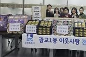 [ 로이뉴스(Roi News) 이지수 기자 ] 영통구 광교1동은 지난 2월 11일, 설 명절을 앞두고 관내 단체와 기관의 따뜻한 나눔이 이어지는 가운데 ‘설 명절 이웃나눔 전달식’을 개최했다고 밝혔다. 광교1동에 따르면, 이번 전달식에는 동남용역이 후원한 햄 40세트와 시립광교동어린이집에서 정성껏 준비한 생필품 꾸러미 40박스가 전달됐다. 또한 광교1동 지역사회보장협의체에서 마련한 후원금과 광교1동 공동모금회를 통해 준비된 떡국떡, 전, 나물, 과일 등 명절 음식도 함께 전달돼 뜻깊은 의미를 더했다. 특히 이번 나눔은 기업과 보육기관, 지역 복지단체가 한마음으로 참여해 설 명절을 앞두고 소외되기 쉬운 이웃들에게 따뜻한 정을 전하며 지역사회에 훈훈한 분위기를 조성했다. 광교1동은 이날 전달된 성금과 물품을 저소득 가정과 취약계층, 홀몸 어르신 등 도움이 필요한 이웃들에게 전달해 따뜻하고 풍성한 설 명절을 보낼 수 있도록 지원할 예정이다. 송숙영 광교1동장은 “설 명절을 맞아 어려운 이웃을 위해 소중한 정성을 모아주신 모든 분들께 깊은 감사의 말씀을 드린다”며, “전달받은 성금과 물품은 꼭 필요한 이