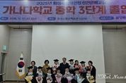 [ 로이뉴스(Roi News) 이지수 기자 ] 화성특례시는 17일 화성시평생학습관에서 ‘2025년 학력인정 성인문해교실 가나다학교 졸업식’을 개최했다. 학력인정 성인문해교실 가나다학교는 사회적·경제적 이유로 학령기 배움의 기회를 놓친 만 18세 이상 비문해·저학력자를 대상으로 문해 교육을 진행하는 프로그램이다. 시는 지난 2020년 12월에 교육부 학력 인정 문해교육 프로그램 운영 기관으로 지정된 이후 학력 인정 성인문해교육을 운영하고 있으며, 올해는 지난 3월 4일부터 12월 11일까지 연 450시간의 교육과정으로 진행됐다. 시는 지난 2022년 초등 3단계 졸업생 15명, 2024년 초등 3단계 졸업생 11명을 배출한 데 이어, 올해는 처음으로 중학 3단계 졸업생 11명을 배출했다. 또한, 중학 1단계는 8명이, 초등 1단계는 9명이 수료했다. 졸업식에서는 학습자 및 가족, 강사들이 참석한 가운데, 중학과정을 마친 졸업생들에 대한 졸업장과 상장 수여, 모범 졸업생 경기도교육감 표창장 수여 등이 진행돼 학습자들의 성과를 함께 축하하고 졸업의 기쁨을 나누는 시간을 가졌다. 학습자 대표