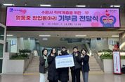 [ 로이뉴스(Roi News) 이지수 기자 ] 수원 영통중학교 창업동아리 학생들이 창업 활동 수익금을 모아 수원시 취약계층 시민을 위해 기부했다. 1월 29일 수원시청 본관 1층 로비에서 열린 기부금 전달식에는 윤영숙 시민복지국장, 영통중학교 창업동아리 학생 등이 참석했다. 학생들은 직접 디자인·제작한 탁상용 달력 100개를 판매해 마련한 수익금 45만 원을 수원시에 전달했다. 수원시는 기부금을 취약계층 시민 지원을 위해 사용할 예정이다. 영통중학교 창업동아리 학생들은 “작은 나눔이지만 어려운 이웃들에게 도움이 되기를 바라는 마음으로 기부에 참여했다”며 “직접 만든 작품으로 나눔을 실천할 수 있어 기쁘다”고 소감을 밝혔다. 윤영숙 시민복지국장은 “학생들이 활동 수익금으로 이웃사랑을 실천한 모습이 대견하다”며 “따뜻한 나눔이 지역사회 전반으로 확산되기를 바란다”고 말했다.