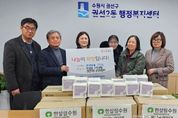 [ 로이뉴스(Roi News) 이지수 기자 ] 수원시 권선구 금곡동은 지난 28일 ㈜케이티스포츠로부터 김장 나눔 행사를 위한 후원금 100만원을 전달받았다고 밝혔다. 이번에 기부된 성금은 김치를 구입하는 데에 사용됐으며, 구입한 김장김치는 지역 내 취약계층 가구에 직접 전달됐다. 이호식 대표이사는 “이번 기부를 통해 지역의 어려운 이웃들에게 실질적인 도움이 되길 바란다며 앞으로도 지역사회와 함께하는 다양한 나눔 활동을 지속적으로 이어가겠다”라고 말했다. 장성임 금곡동장은 “㈜케이티스포츠에서 김장 나눔을 위해 후원금을 전달해 주셔서 감사드린다며, 이번 후원으로 마련된 김장김치가 취약계층의 겨울나기에 큰 도움이 될 것”이라며 “앞으로도 주민들이 따뜻한 겨울을 보낼 수 있도록 지원을 이어가겠다”라고 전했다.