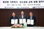 [ 로이뉴스(Roi News) 이지수 기자 ] 용인특례시는 8일 시청 접견실에서 강남대학교, 용인예술과학대학교와 ‘용인형 기후위기·탄소중립 교육 동행 협약’을 체결했다. 이날 협약식은 기후위기에 공동으로 대응하고, 지속가능한 지역사회 발전과 미래 세대 양성을 위해 마련됐다. 협약의 주요 내용은 ▲탄소중립‧기후 위기 대응 교육프로그램 공동 개발‧운영 ▲교육봉사‧멘토링 등 교원‧전문가‧학생 간 교류와 연계 활동 지원 ▲지역사회 대상 탄소중립 홍보‧캠페인‧체험 교육 공동 추진 ▲교육시설‧인프라 상호 활용 등이다. 협약에 따라 시와 두 대학은 탄소중립 사회 실현을 위한 교육 모델을 구축한다는 방침이다. 각 대학의 유아교육과 인력과 연계해 교육봉사 기회를 확대하고, 신규 프로그램을 공동 개발해 용인지역 학생들을 탄소중립 실천 의지를 가진 인재로 육성하고, 시민의 환경 감수성을 높이는 데도 이바지하겠다는 계획이다. 이에 따라 오는 12일 용인예술과학대 유아교육과 연극동아리가 기후변화체험교육센터에서 아동 30명을 대상으로 관련 연극을 진행한다. 이상일 시장은 “기후 위기는 글로벌 차원