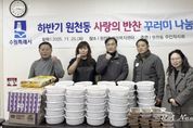 [ 로이뉴스(Roi News) 이지수 기자 ] 수원시 영통구 원천동 행정복지센터는 원천동 주민자치회 주관으로 진행하는 '2025년 사랑의 반찬 꾸러미 나눔' 사업을 통해 관내 취약계층 100가구에 반찬 나눔을 실시했다고 25일 밝혔다. 주민자치회는 지역의 어려운 이웃을 돕기 위해 반찬을 직접 조리해 기초생활수급자, 차상위계층, 복지 사각지대 대상자 등 총 100가구에 전달했다. 1차 꾸러미는 2025년 6월 17일, 2차 꾸러미는 11월 25일에 각각 배부를 완료했다. 올해 꾸러미 구성은 주민자치회 위원들이 정성껏 준비한 제육볶음 등으로, 원천동 건강복지팀과의 연계를 통해 대상 가정에 직접 방문하여 전달하며 안부 확인도 함께 진행했다. 원천동은 이번 나눔 활동을 통해 소외된 이웃들의 정서적 고립감을 해소하고, 더 따뜻한 지역 공동체 조성에 기여할 것으로 기대하고 있다. 윤두원 원천동 주민자치회장은 “사랑의 꾸러미 나눔을 통해 관내 취약계층을 지원하고 이웃사랑 실천을 위한 좋은 기회가 됐기를 바란다”고 전했다.