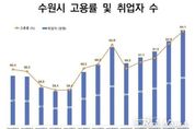 [ 로이뉴스(Roi News) 이지수 기자 ] 수원에서 따뜻한 고용 훈풍이 불고 있다. 일자리 정책이 성공적인 결실을 맺고 있다는 것이 역대 최고의 지역 고용률 기록으로 드러났다. 첨단 산업 분야의 기업 유치와 지역 기업의 성장을 지원하는 정책들이 우수한 미래 일자리를 만들고, 지역상권 활성화를 자양분으로 지역과 주민이 상생하는 일자리들이 활성화된 덕분이다. 특히 수원시는 맞춤형 일자리 서비스를 지원하고, 취약 노동자들의 안전망을 구축하는 등 일자리와 노동 권익의 균형을 맞추는 공공의 노력을 강화해 왔다. ◇수원시에서 ‘고용의 봄’이 시작됐다 통계청이 발표한 2025년 상반기 수원시 고용률은 64.1%다. 수원시에 살고 있는 15세 이상 시민 100명 중 64명이 수입을 목적으로 일을 하고 있다는 의미다. 이 같은 고용률은 역대 최고치 기록이다. 국가통계포털(KOSIS)에서 공개하고 있는 26번의 조사 결과 중 가장 높다. 전년 동기인 2024년 상반기 61.5%, 직전 반기인 2024년 하반기 62.9%에서 지속 상승 중이다. 수원시 고용률이 60% 중반을 기록한 것은 처음이다. 통계청이 반기마