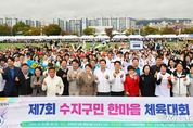 [ 로이뉴스(Roi News) 이지수 기자 ] 용인특례시 수지구는 18일 아르피아 상부 체육시설에서 ‘제7회 수지구민 한마음 체육대회’를 개최했다. 수지구 체육연합회가 주최·주관한 이번 대회엔 구민 약 2000여 명이 참여해 승부차기, 볼풀공 바구니농구, 줄다리기, 계주 등으로 구민 모두 한마음으로 어우러지는 시간을 보냈다. 또 식전 공연인 동천동 훌라댄스, 신봉동 밸리댄스와 단국대학교 치어리딩팀 ‘아스테르’의 공연, 퓨전 장구, 보컬그룹 ‘뮤랑’, 마술사 홍승인, 초대 가수 김성환 등이 다채로운 무대를 선보였다. 행사장 곳곳에선 화분 만들기, 친환경 리필스테이션(세제 담아가기), MBTI 검사, 캘리그라피 체험, 키링 만들기, 구민 건강 서비스 안내 부스 등 체험 프로그램이 운영됐다. 이상일 시장은 “우리 수지구민들이 모처럼 한자리에 모여 우정을 나누면서 행사를 통해 행복한 시간을 많이 보내시라고 비가 그친 것 같다”며 “수지중앙공원은 축구장 76개 크기의 시민 힐링 공간으로 조성되고 있고, 상현3동 행정복지센터와 함게 건립되는 광교스포츠센터에는 25m레인 10개의 수영장이 들어서게 된다"며 "