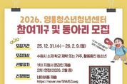 [ 로이뉴스(Roi News) 이지수 기자 ] 수원시청소년청년재단 영통청소년청년센터가 2026년 활동에 함께할 청소년 참여기구 및 동아리 참가자를 모집한다. 모집 대상은 청소년운영위원회, 놀이동아리, 문화예술동아리연합 총 3개 분야이며, 선발 인원은 약 100명이다. ▲청소년운영위원회는 기관 운영 전반에 대해 청소년이 직접 의견을 제안하는 활동으로, 청소년의 주도성과 참여를 강화한다. ▲놀이동아리는 공동체 기반 놀이를 통해 건강한 또래 관계를 형성하고, ▲문화예술동아리연합은 댄스·밴드 등 다양한 장르에서 청소년의 문화예술 역량을 강화하는 동아리이다. 참여기구 및 동아리는 2026년 한 해 동안 진행되며, 센터의 주요 사업과 연계된 다양한 프로젝트에 참여하게 된다. 참여기구 및 동아리 모집 기간은 2026년 2월 9일까지이며, 신청은 홍보물 내 QR코드를 통해 온라인 신청서(네이버폼)를 작성해 제출하면 된다. 선발된 청소년들은 다양한 프로그램을 주도적으로 운영하게 된다. 영통청소년청년센터 관계자는“참여기구 및 동아리 활동은 청소년이 단순 참여자가 아닌, 스스로 활동을 만들어가는 주체로 성장할 수 있는 기회”라며