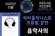 [ 로이뉴스(Roi News) 이지수 기자 ] 평택시립 비전도서관이 오는 12월 18일 저녁 7시 조윤범 바이올리니스트를 초청하여 ‘음악사의 하이라이트’를 주제로 야간 인문학 강연을 진행한다. ‘음악사의 하이라이트’는 방대한 서양 음악사의 흐름을 2시간으로 압축하여 마치 영화를 보듯 자연스럽게 이해할 수 있는 강연이다. 각 시대의 대표적인 사건과 음악적 변화를 통해 클래식을 깊이 있고 풍부하게 만날 소중한 기회가 될 것으로 기대된다. 조윤범 바이올리니스트는 콰르텟엑스의 리더이자 편곡자, 저자, 음악 해설가, 방송진행자로 '콰르텟엑스와 함께하는 조윤범의 파워클래식', CBS음악FM '아름다운 당신에게', KBS1TV '문화책갈피'의 '청바지를 입은 클래식', MBC라디오 '굿모닝FM'의 클래식 음악 코너, tvN '어쩌다 어른'에서 진행과 강연을 통해 클래식의 대중화에 앞장섰으며, 최근에는 EBS1 '나의 두 번째 교과서' 음악편에서 10강에 걸친 방송을 진행해 큰 호응을 얻고 있다. 지은 책으로는 '조윤범의 파워클래식 1, 2권', '나는 왜 감동하는가', '클래식 A-yo'가 있다.