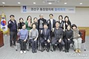 [ 로이뉴스(Roi News) 이지수 기자 ] 수원시 권선구는 지난 4일, 권선구청 상황실에서 각 동 통장협의회 회장들이 참석한 가운데 2월 정기 월례회의를 개최했다. 이날 회의에서는 2026년 수원시 시민안전보험, 취업준비청년 면접정장 대여사업 '청나래'와 같은 수원시의 주요 사업 안내가 이루어졌으며, 설 명절을 맞아 통장의 역할을 되새기는 시간을 가졌다. 양배근 권선구 통장협의회장은 “설 명절을 맞아 통장으로서 지역의 취약계층 등을 위해 노력하고자 한다”며, “소외된 주민들에게 먼저 손을 내밀어 지역의 발전과 화합을 위해 통장협의회가 앞장서겠다”라고 말했다. 고호 권선구청장은 “명절을 앞두고 통장님들께서 마을 구석구석을 세심하게 살펴주시길 부탁드린다”며, “앞으로도 민관이 긴밀히 소통하고 협력하여 더욱 살기 좋은 권선구를 만들어 나가는 데 최선을 다하겠다”라고 말했다.